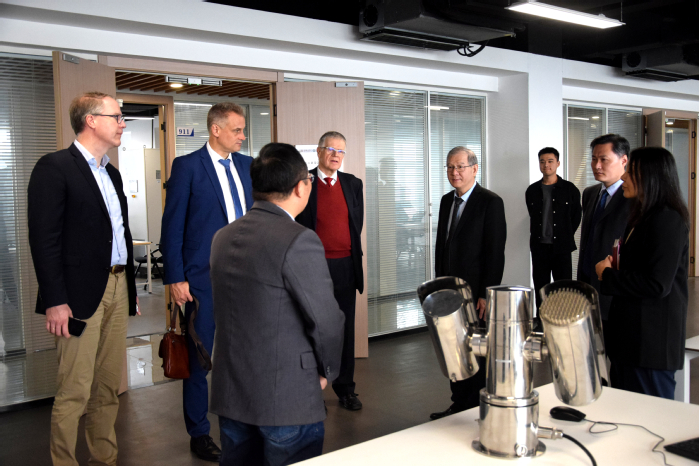 王其东陪同亚历山大·施梅曼一行深入能源材料与化工学院和大众学院,调研先进电池关键材料与技术重点实验室、大众学院校企培训中心与校企实训中心、大众学院产教融合平台实验室。