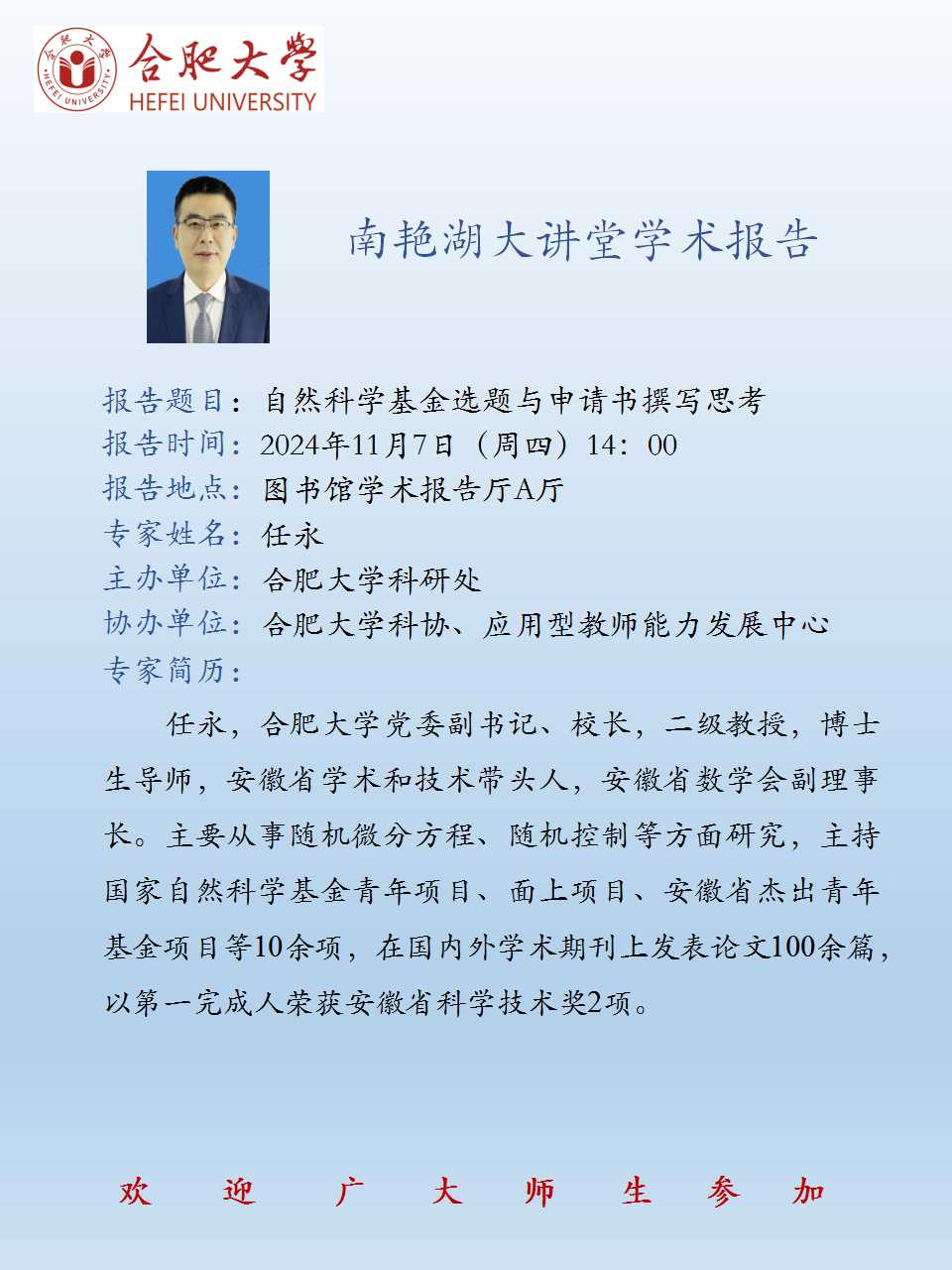 【南艳湖大讲堂】自然科学基金选题与申请书撰写思考