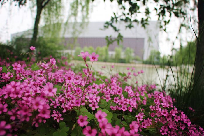 刚从体育馆、操场上挥汗如雨运动而归来匆匆的学生们不禁放慢脚步,感受着空气中夹杂着的泥土芬芳的气息,感受到春天的脚步。“记得绿罗裙,处处怜芳草。”教室里,学子们正在品味这中国汉语言的美感,想起窗外春色,不觉嘴角上扬。风微凉,芳草未凄凄,罗裙相惜否?人惜春雨贵如油,这草木更懂怜惜,它们将雨水滴滴吸吮,积蓄着破土的力量。都只为到四月芳菲,与学子们常绿相陪。学子们也和草木们相惜,他们知道小草生命力不止在于破土而出的那一刻,积蕴力量也是智慧。