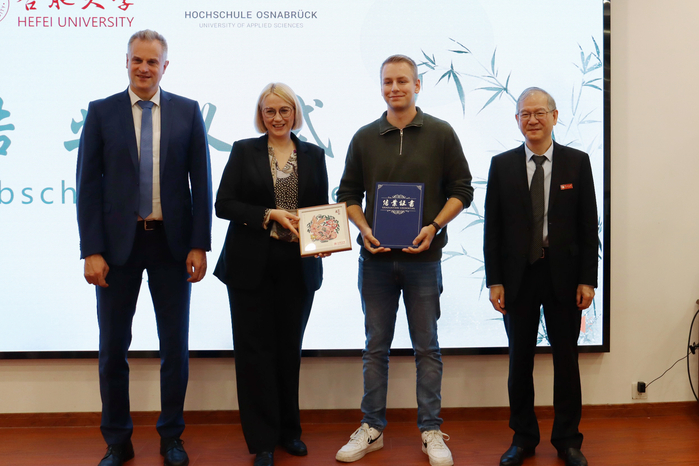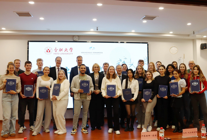 随后,双方来到设计学院参加德国学生徽文化秋令营结业仪式。德国学生在我校交流期间学习生活丰富多彩,体验了舞龙舞狮、中国功夫、针灸推拿、书法、饮茶等多种形式的中华传统文化。