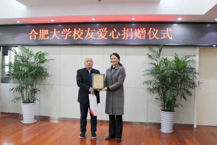 2月27日,我校在行政楼九楼会议室举行校友爱心捐赠仪式。大湾区校友联谊会名誉会长、1993级化工专业校友谢超群一行,副校长陈秀出席仪式。校友办、能源材料与化工学院及安徽中德教育合作基金会相关负责同志参加。仪式由基金会管理办公室主任刘金平主持。