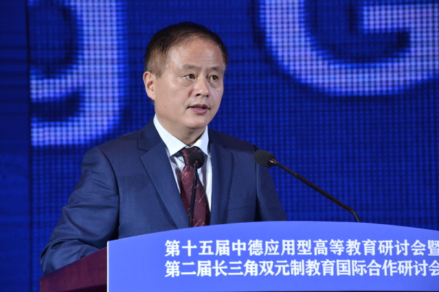 Prof. Dr. Hendrik Lackner, Dekan des Hochschulzentrums China (HZC) der Hochschule Osnabrück erläuterte das duale Ausbildungsmodell unter den Gesichtspunkten der anwendungsorientierten Hochschulbildung und der dualen Hochschulbildung, der jüngsten Entwicklung in Deutschland und der einschlägigen Erfahrungen anhand von Fallstudien. Er sagte, dass die Entwicklung der Unternehmen eine große Anzahl qualifizierter anwendungsorientierter Talente benötige und die Ausbildung von Talenten an den Hochschulen eng mit den Bedürfnissen der Unternehmen verbunden werden solle, und das duale System neue Möglichkeiten für die Entwicklung der Hochschulen biete.
