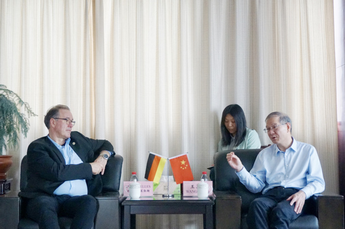 Am 18. April besuchte Prof. Dr. Michael Nelles, Gastprofessor der Universität Hefei, Träger des Freundschaftspreises der chinesischen Regierung, wissenschaftlicher Geschäftsführer des Deutschen Biomasseforschungszentrums und Professor der Universität Rostock, die Universität Hefei. Wang Qidong, Parteisekretär der Universität Hefei, führte ein herzliches Gespräch mit ihm, während Zhang Hui, Direktor des Amtes für internationalen Austausch und Zusammenarbeit, Wang Chuyan, stellvertretender Direktor des Amtes für wissenschaftliche Forschung, Ruan Banfeng, Vizedekan der Fakultät für Biologie, Ernährung und Umwelt, und Yu Zhimin, Direktor des Internationalen Vereinten Forschungszentrums Anhui Biomasse (China-Deutschland), an der Sitzung teilnahmen.